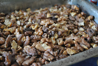 Nuci, foi de placinta, coaja de portocale, zahar brun, zahar vanilat, rom, vanilie.